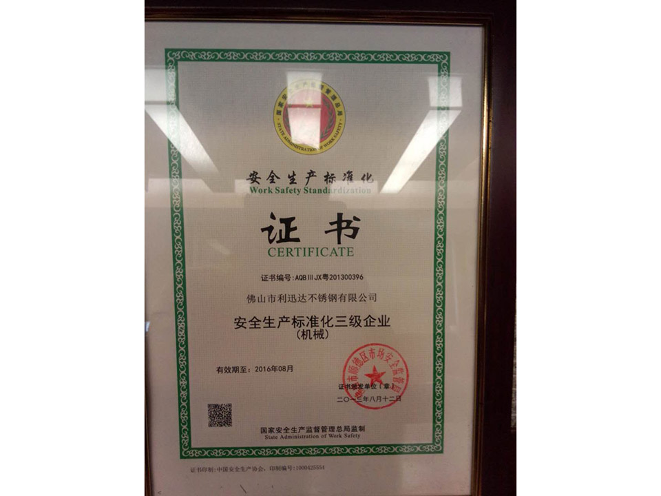 安全生产标准化三级企业