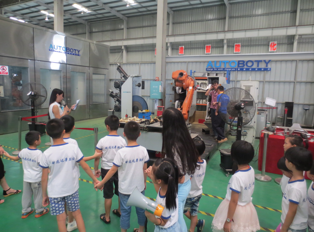 昨天,公司组织暑期班的小朋友到机器人系统工作车间进行参观学习。