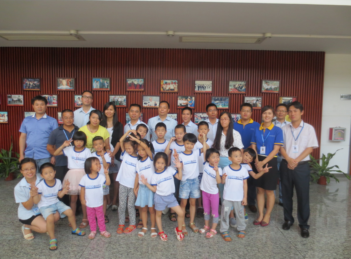 图为公司领导们与小朋友们在公司大堂合影留念