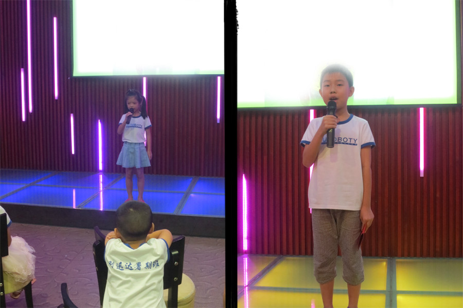 小朋友代表上台演讲,讲述他们的暑期班生活。天真朴实的语言,表达的是他们都对父(母)公司的感谢,是他们对老师和朋友的不舍。