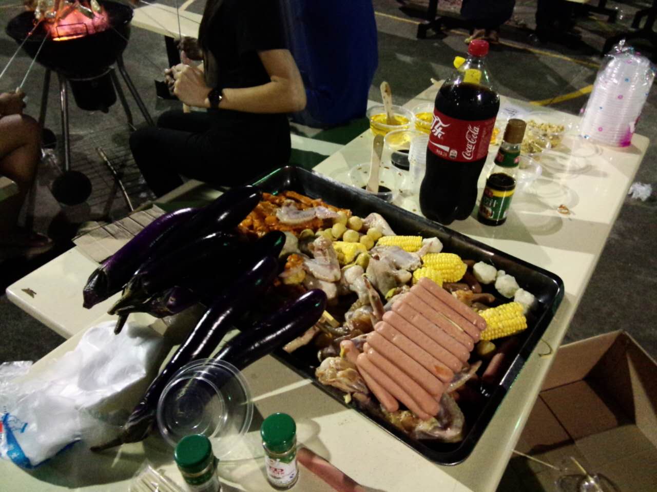 公司为参加烧烤晚会的同事们除了准备了各类烧烤食品、应节水果,还有皮蛋瘦肉粥、三丝炒粉等供同事们选择。