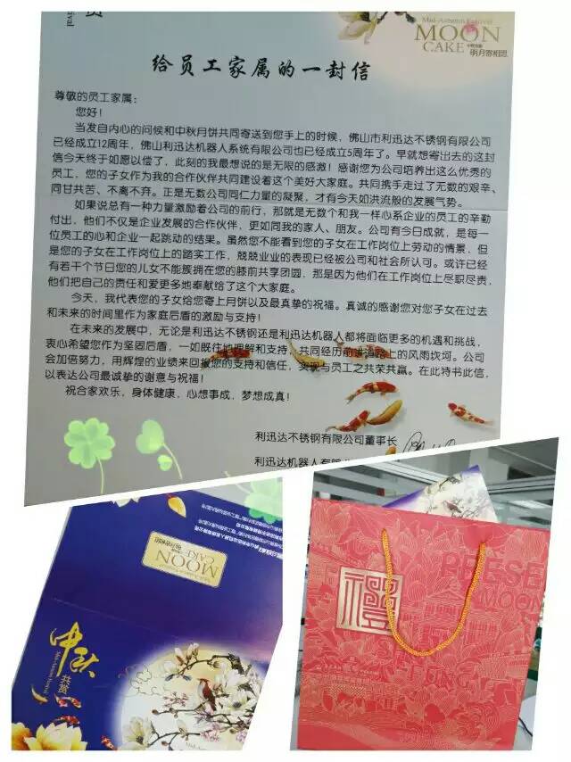 很多同事家属,在收到公司给他们寄过去的月饼和贺卡之后,都特别感动,纷纷拍照晒出微信朋友圈,表示很感谢公司对他们的挂念和祝福。