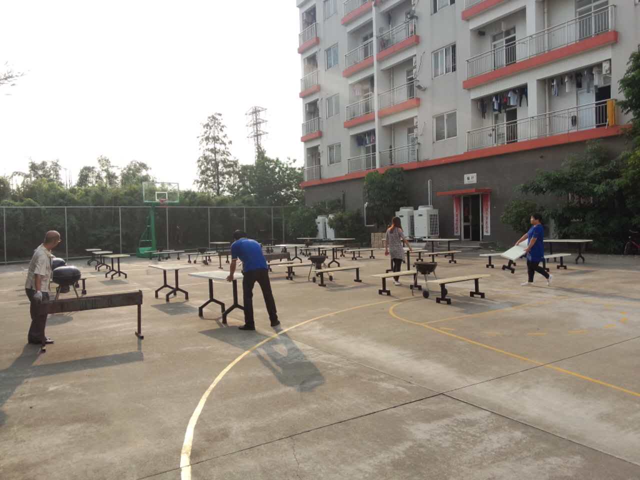 图为公司后勤部张经理带领各工作人员在准备烧烤晚会的各项工作,为了让大家与愉快、安全地进行烧烤活动,公司很多其他部门的同事也自发组织过来帮忙,团结一心,只为晚上的烧烤晚会顺利开展。